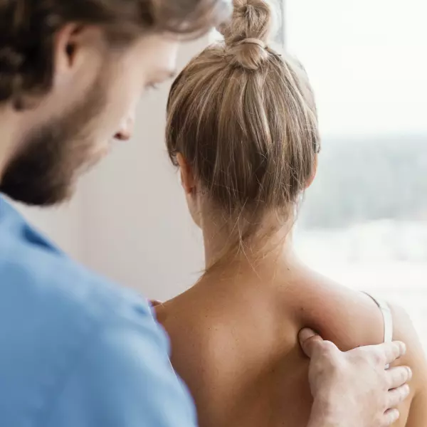 Tiefgehende Massage zur Lockerung verspannter Rückenmuskulatur.
